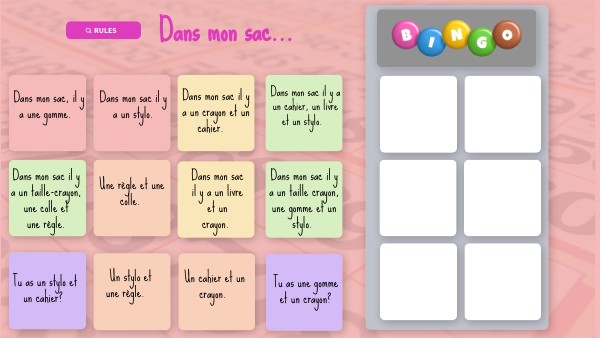 Dans mon sac il y a un cahier, un livre et un stylo.