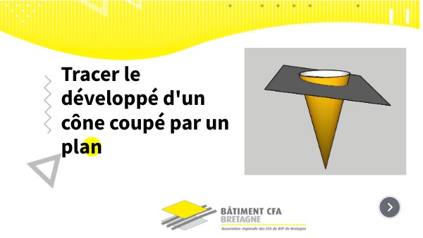 On ramène le point d'intersection avec le plan sur le coté du cône perpendiculairement à la l'axe