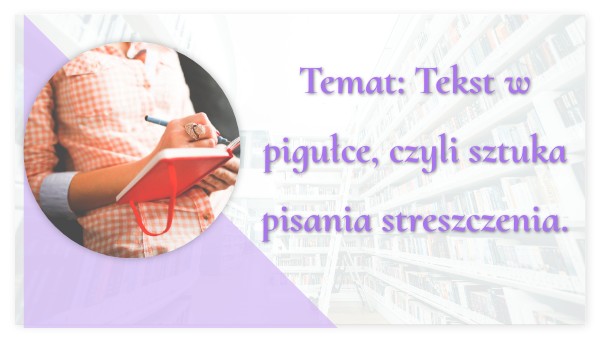 Temat: Tekst w pigułce, czyli sztuka pisania streszczenia.