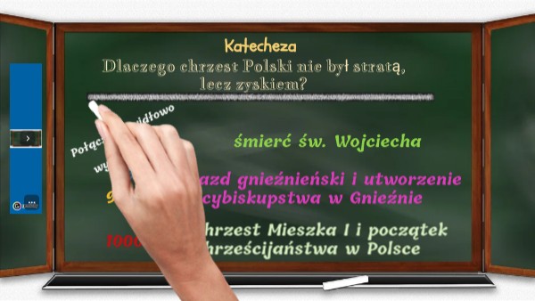 – W którym roku Polska przyjęła wiarę chrześcijańską? – Kto wtedy panował w Polsce? – Jak ma na imię święty czczony szczególnie w Gnieźnie?