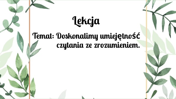 Temat: Doskonalimy umiejętność czytania ze zrozumieniem.