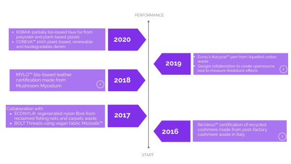 - ECONYL®: regenerated nylon fibre from reclaimed fishing nets and carpets waste