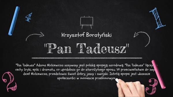 "Pan Tadeusz" Adama Mickiewicza nazywany jest polską epopeją narodową. "Pan Tadeusz” łączy on cechy liryki, epiki i dramatu, co upodabnia go do starożytnego eposu. W przeciwieństwie do innych dzieł Mickiewicza, przedstawia świat dobry, jasny i swojski. Istotą epopei jest ukazanie społeczności w momencie przełomowym.