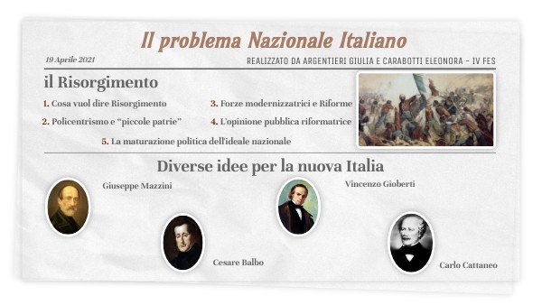 => duranti questi congressi vennero trattati gli argomenti più vari dall’agricoltura all’istruzione popolare=> contribuirono a far maturare un’opinione pubblica liberale, riformista e anche nazionale => si iniziò a riconoscere che il progresso civile dell’Italia era strettamente legato ad un rinnovamento costituzionale degli stati => si doveva superare la frammentazione politica, il provincialismo culturale e il municipalismo (tendenza di privilegiare gli interessi della realtà locale (il municipio, il comune)