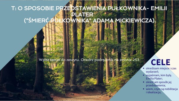 T: o sposobie przedstawienia pułkownika- emilii plater ("śmierć pułkownika" adama mickiewicza).