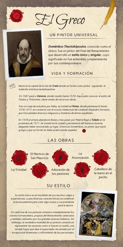 Doménikos Theotokópoulos, conocido como el Greco, fue un pintor del final del Renacimiento que desarrolló un estilo único y singular, cuyo significado no fue entendido completamente por sus contemporáneos.