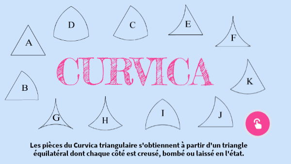 Les pièces du Curvica triangulaire s'obtiennent à partir d'un triangle équilatéral dont chaque côté est creusé, bombé ou laissé en l'état.