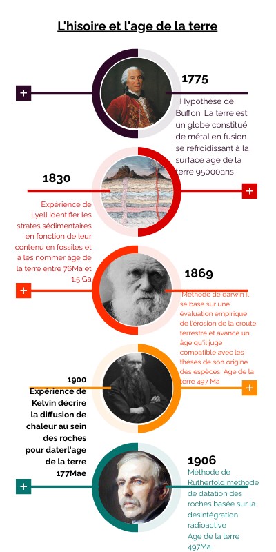 Expérience de Lyell identifier les strates sédimentaires en fonction de leur contenu en fossiles et à les nommer âge de la terre entre 76Ma et 1.5 Ga