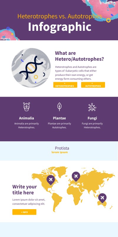 Heterotrophes and Autotrophes are types of Eukaryotic cells that either produce their own energy, or get energy form consuming others.