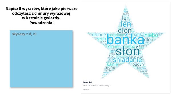 Napisz 5 wyrazów, które jako pierwsze odczytasz z chmury wyrazowej w kształcie gwiazdy. Powodzenia!