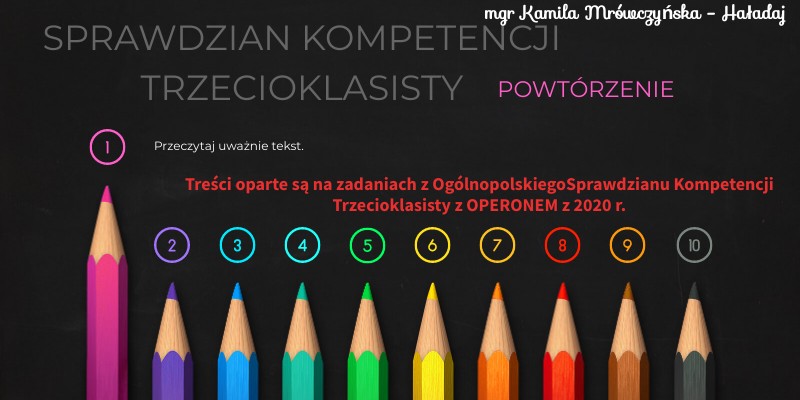 Treści oparte są na zadaniach z OgólnopolskiegoSprawdzianu Kompetencji Trzecioklasisty z OPERONEM z 2020 r.