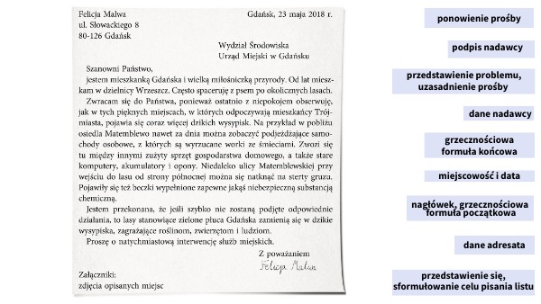 przedstawienie się, sformułowanie celu pisania listu