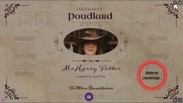 Mes très chers Gryffondors, Je vous félicite pour l'amélioration de votre comportement. Vous avez essayé de faire de votre mieux, malgré un cas très difficile dans notre maison... ! Certains d'entre vous ont essayé d'aider au maximum certains élèves en difficultés dans votre groupe, vous pouvez être fiers de vous. Pour accéder au trésor, une dernière énigme vous attend... Vous la trouverez au sein même de votre salle de classe ! Un indice : regardez bien où le blason de notre maison repose... Godric Gryffondor