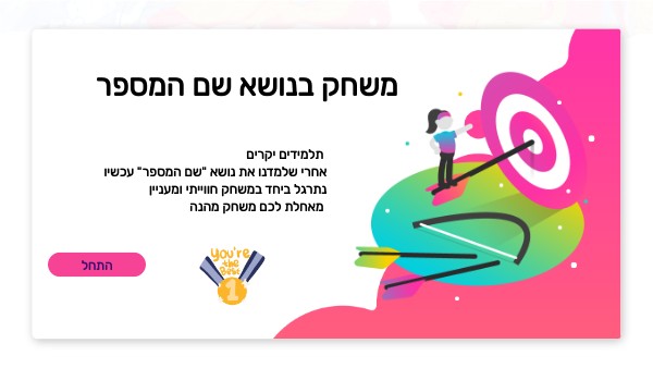 תלמידים יקרים אחרי שלמדנו את נושא "שם המספר" עכשיו נתרגל ביחד במשחק חווייתי ומעניין מאחלת לכם משחק מהנה