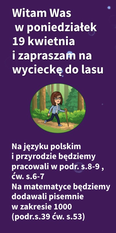 Witam Was w poniedziałek 19 kwietnia i zapraszam na wycieczkę do lasu