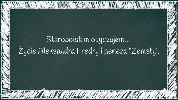 Ta autentyczna historia.................... Aleksandra Fredrę do napisamia "Zemsy" Dzieje .......... wiecznego sporu wskrzesił na kartach ....................Okoliczności powstania dzieła to inaczej ............................ . ....................................................literackich antagonistów byli spierający się o ........................ .................................... właściciele zamku w ........................ .