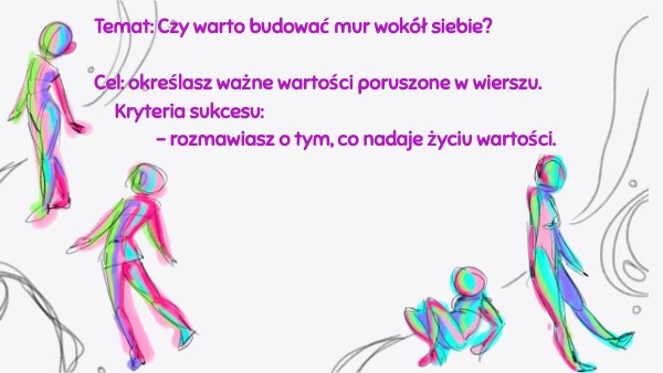 Temat: Czy warto budować mur wokół siebie? Cel: określasz ważne wartości poruszone w wierszu. Kryteria sukcesu: - rozmawiasz o tym, co nadaje życiu wartości.