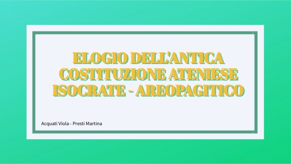 Elogio dell'antica costituzione ateniese Isocrate - Areopagitico