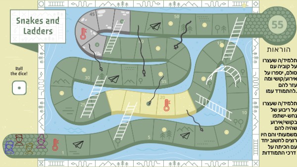 תלמיד/ה שעצרו על קוביה עם סולם, יספרו על אירוע/קושי ומה עזר להם להתמודד עמו. תלמיד/ה שעצרו על ריבוע של נחש-ישתפו בקושי/אירוע שהיה להם משמעותי והם היו רוצים לחשוב יחד עם הכיתה על דרכי התמודדות