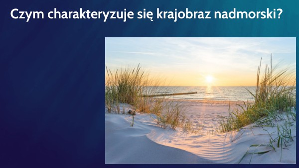 Poznam cechy charakterystyczne dla krajobrazu nadmorskiego.