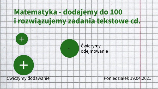 Matematyka - dodajemy do 100 i rozwiązujemy zadania tekstowe cd.