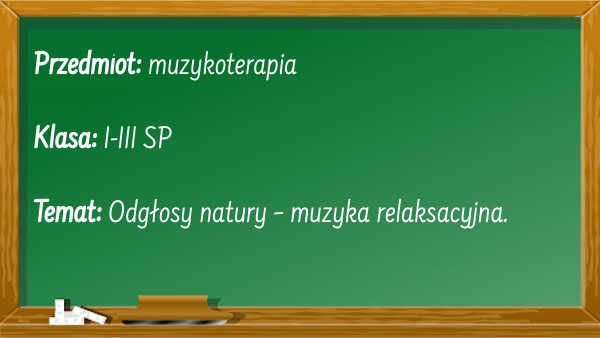 Przedmiot: muzykoterapia Klasa: I-III SP Temat: Odgłosy natury – muzyka relaksacyjna.