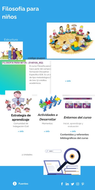 El curso Filosofía para niños, hace parte del campo de formación Disciplinar Específico EDE. Es un curso de tipo metodológico (T/P) de tres (3) créditosacadémicos.
