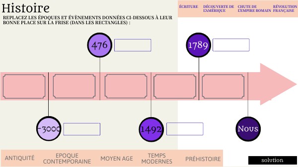 Replacez les époques et évènements données ci-dessous à leur bonne place sur la frise (dans les rectangles) :