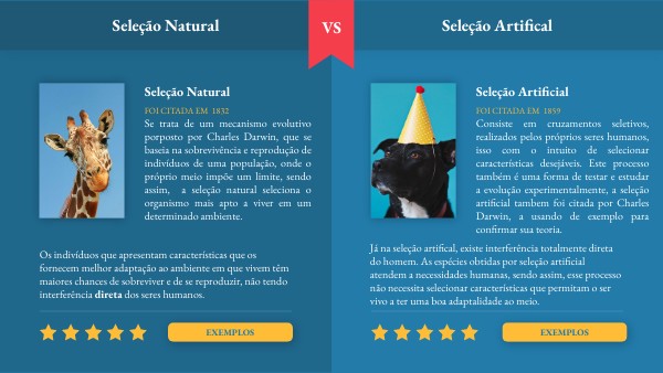 Já na seleção artifical, existe interferência totalmente direta do homem. As espécies obtidas por seleção artificial atendem a necessidades humanas, sendo assim, esse processo não necessita selecionar características que permitam o ser vivo a ter uma boa adaptalidade ao meio.