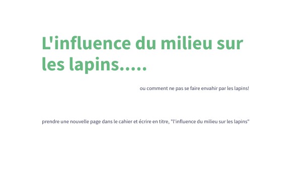 prendre une nouvelle page dans le cahier et écrire en titre, "l'influence du milieu sur les lapins"