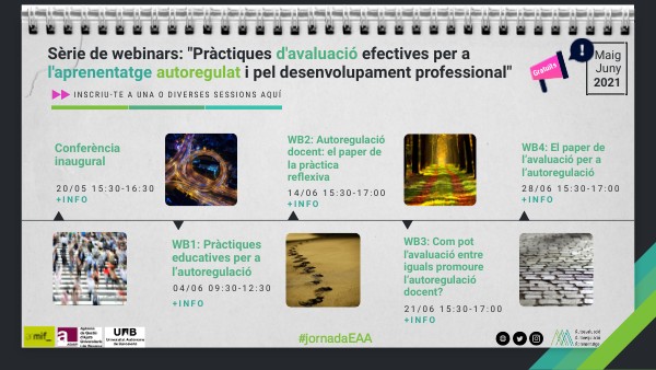 Sèrie de webinars: "Pràctiques d'avaluació efectives per a l'aprenentatge autoregulat i pel desenvolupament professional"