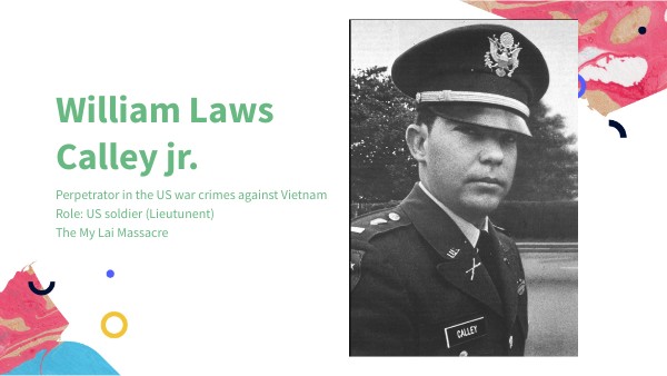 Perpetrator in the US war crimes against VietnamRole: US soldier (Lieutunent) The My Lai Massacre