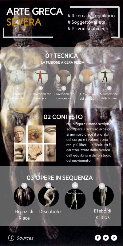Nella figura umana scolpita scompare il sorriso arcaico, si ammorbidisce il profilo del corpo e i volumi sono resi più liberi. La scultura è caratterizzata dalla ricerca dell'equlibrio e dallo studio del movimento.