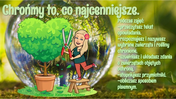Podczas zajęć: -przeczytasz tekst opowiadania, -rozpoznajesz i nazywasz wybrane zwierząta i rośliny chronione, -uzuełniasz i układasz zdania o zwierzętach objętych ochroną, -stopniujesz przymiotniki, -obliczasz sposobem pisemnym.