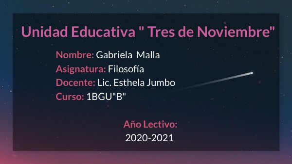 Nombre: Gabriela Malla Asignatura: Filosofía Docente: Lic. Esthela Jumbo Curso: 1BGU"B" Año Lectivo: 2020-2021