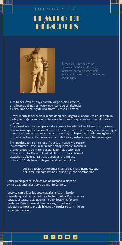 El mito de Hércules es un ejemplo de héroe clásico, que enfrenta duras pruebas con humildad y arrojo, venciendo en todas ellas.