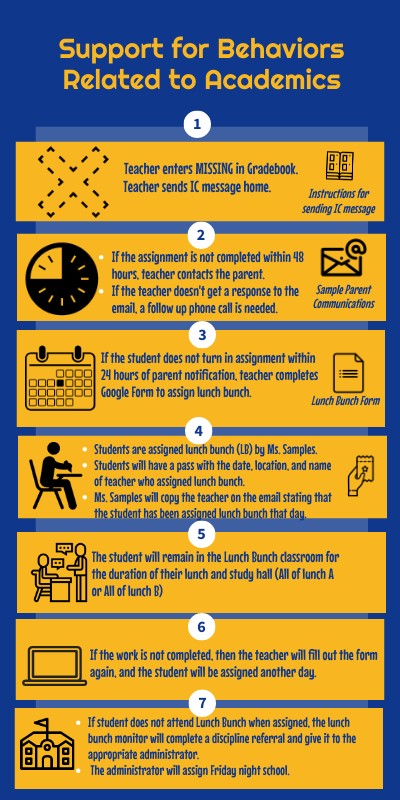 If the student does not turn in assignment within 24 hours of parent notification, teacher completes Google Form to assign lunch bunch.