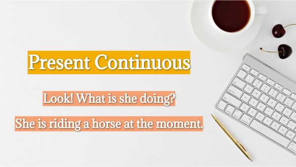 Osoba + forma 'to be' + czasownik z -ing + reszta zdania