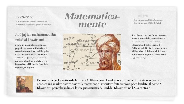- attraverso la ricerca effettuata abbiamo ricavato le informazioni riguardo Al-khwārizmī.