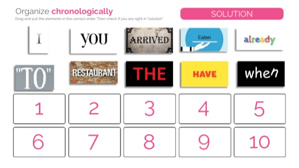 Drag and put the elements in the correct order. Then check if you are right in "solution".