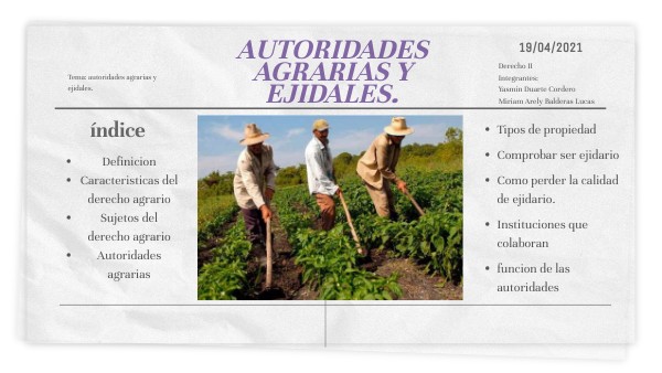 AUTORIDADES AGRARIAS Y EJIDALES.