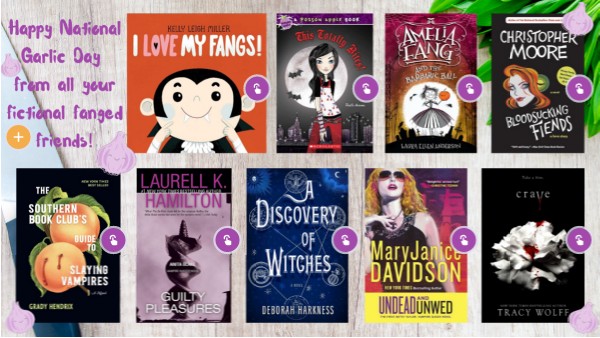 To celebrate National Garlic Day, here's a fun list of books featuring fictional fanged folk! You'll want to eat lots of garlic before you read these....