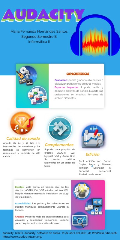 Audacity. (2021). Audacity. Software de audio. 19 de abril del 2021, de WorPress Sitio web: https://www.audacityteam.org/