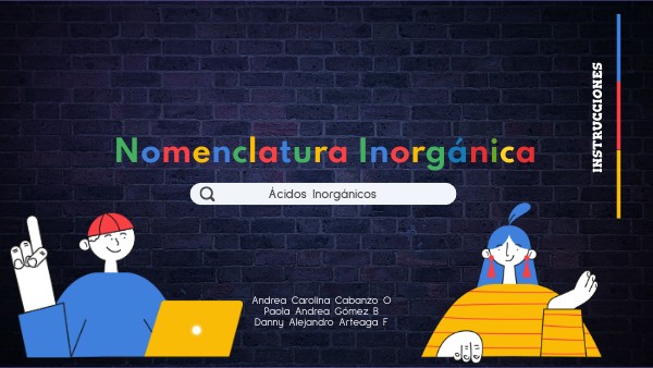 Nomenclatura Inorganica es una herramienta digital e interactiva que ha sido diseñada para que los estudiantes de educación media aprendan de una forma lúdica (No convencional) los conceptos fundamentales y reglas básicas de la nomenclatura de los ácidos inorgánicos.