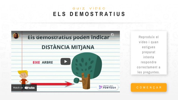 Reproduïx el vídeo i quan estigues preparat intenta respondre correctament a les preguntes.