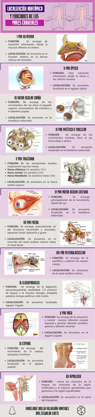 - FUNCIÓN: Se encarga esencialmente de dar funciones sensoriales y viscerales, expresión facial, salivación y gusto.