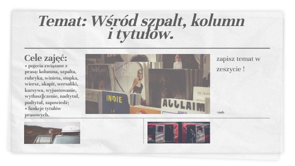 Temat: Wśród szpalt, kolumn i tytułów.
