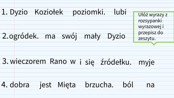 Ułóż wyrazy z rozsypanki wyrazowej i przepisz do zeszytu.