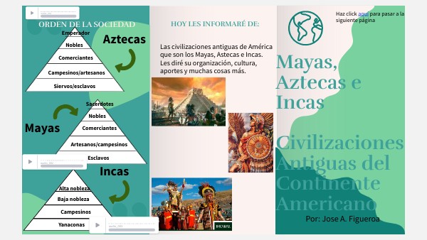 Las civilizaciones antiguas de América que son los Mayas, Astecas e Incas. Les diré su organización, cultura, aportes y muchas cosas más.