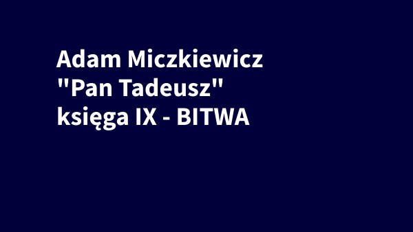 Adam Miczkiewicz "Pan Tadeusz" księga IX - BITWA
